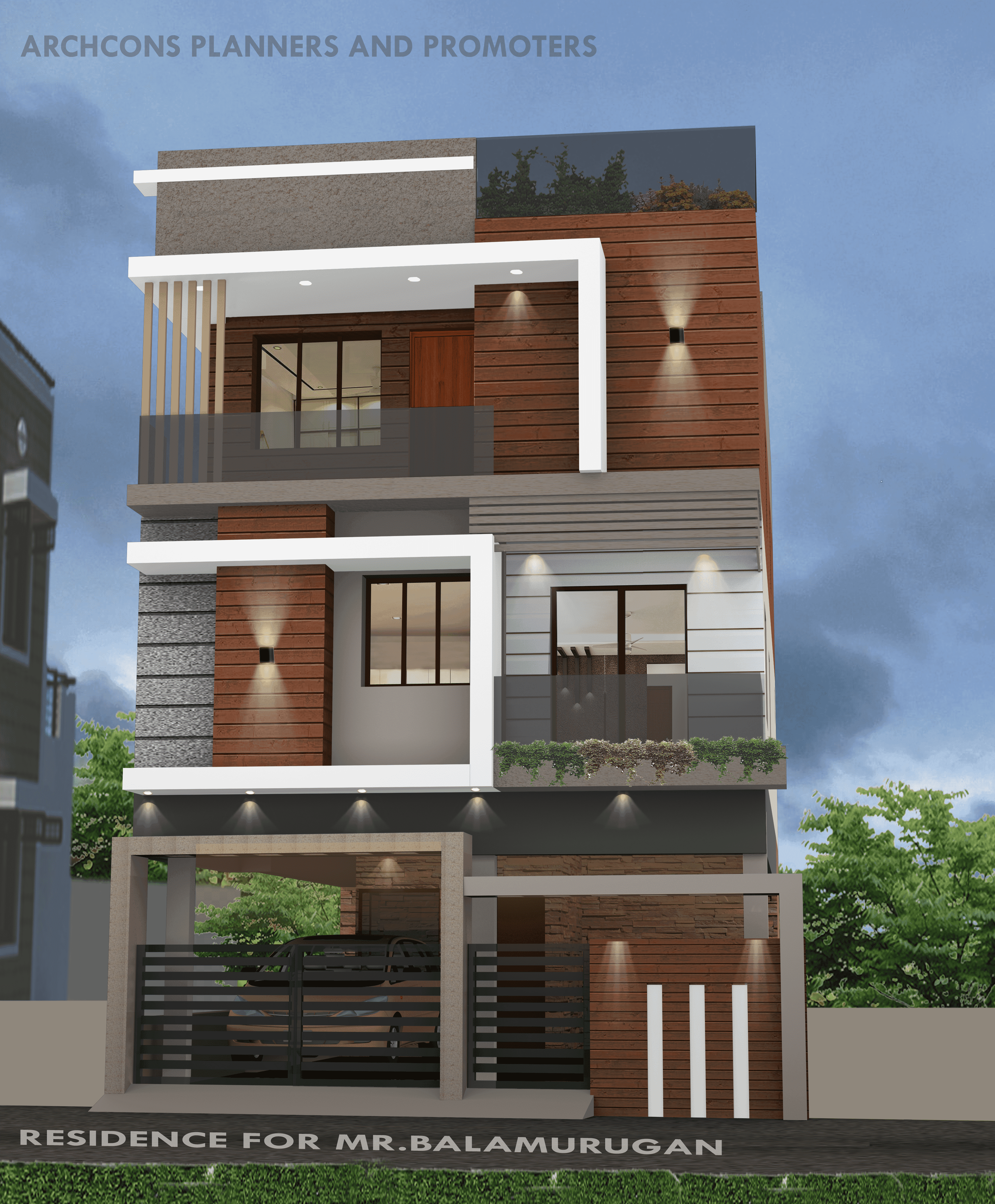 Designed for a modern family, Mr. Balamurugan Residence in Nolambur combines flexible planning with long-term functionality. The project includes a 1BHK rental unit on the ground floor, while the first and second floors form the owner’s residence, connected by an internal staircase and a private home lift. With dedicated guest and study spaces, the design accommodates present needs while allowing for future expansion. The project was delivered as a complete end-to-end solution covering architecture, construction, and interior design, ensuring a cohesive and well-executed outcome.